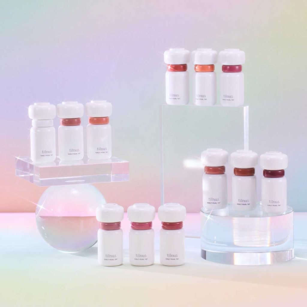 「ティルナス」の第1弾のアイテムはリップティント「サンリットパール ティント」。韓国のリップトレンドである豊富なカラーバリエーションと洗練された色合いに、日本のトレンドであるツヤ感を融合させ、新たにパール感を加えたリップとなっている。さらに、塗布後約1分で、色とりどりのパールが浮かび上がる新感覚のテクスチャーも実現している。