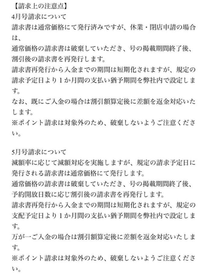 休業・閉店サロンに掲載費の減額、全サロン対象で支払猶予