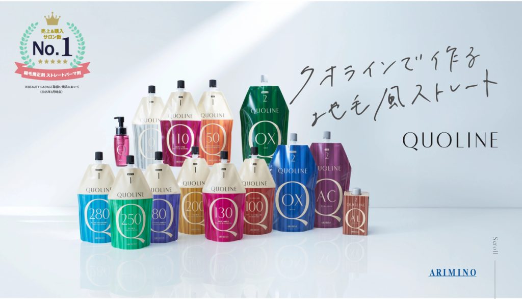クオラインは、質感やデザインを自在にコントロールできるパーマ剤シリーズとして定評がある。「地毛風」に仕上がるストレートパーマの活用が特に人気で、自然な仕上がりを求める顧客層から支持を集めている。