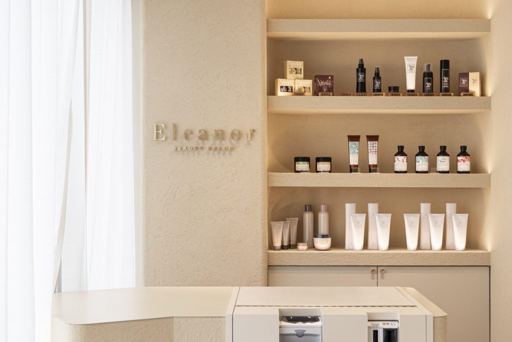 限られたスペースを贅沢かつ洗練された癒し空間に演出したエレノア池袋東口2nd。店舗デザインは、顧客と美容師の絆を深める居心地のよい滞在時間を陰から支える頼もしい存在といえる。