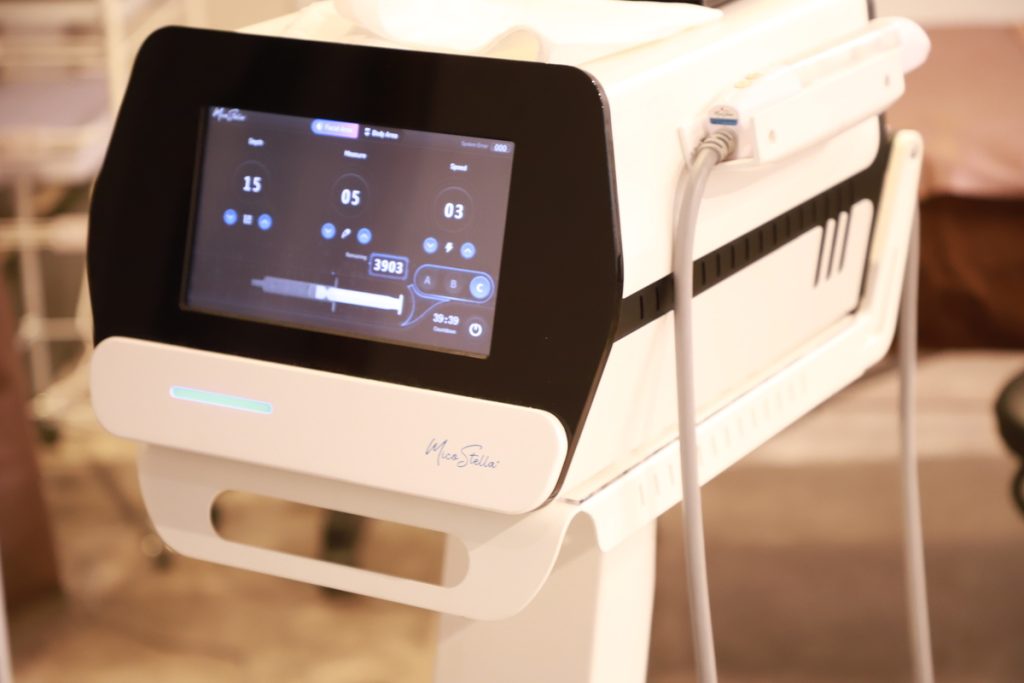 MicoStella(ミコステラ)の社名を冠した美容機器「ミコステラ」は、肌を傷つけることなく美容液を浸透させ、“美容点滴”のようにケアする。