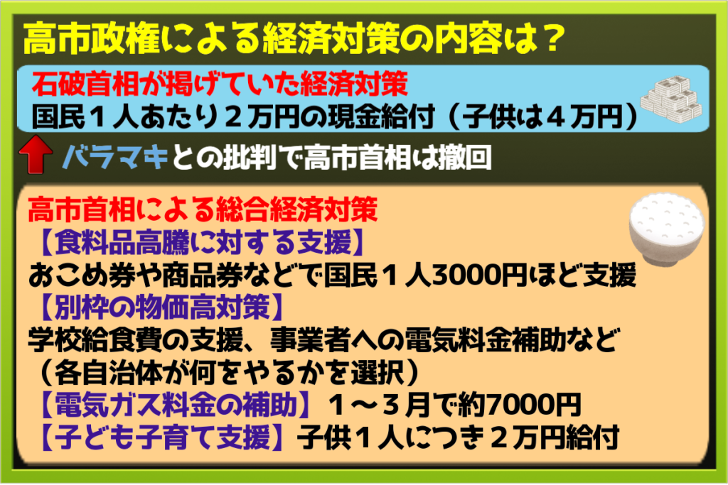 高市首相はこうした現金給付をするなら、各自治体に交付金を配って、地域の実情に合わせた経済対策をやってもらったほうが良いと考え、政策を切り替えたわけです。