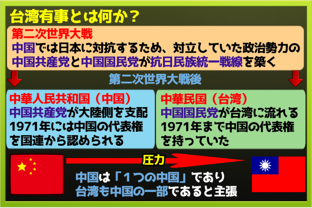 そもそも、中国は第二次世界大戦後に現在の中華人民共和国(中国)と中華民国(台湾)に分かれました。