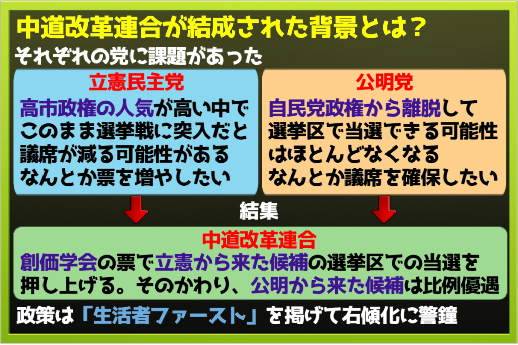 この、それぞれの党の課題を一緒になることで解決しようとしたのが中道改革連合です。