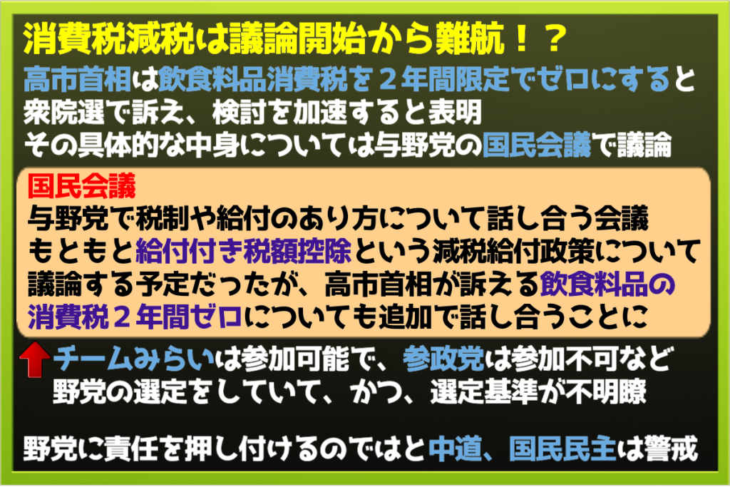 また、チームみらいはそもそも消費税減税には反対の立場を取っているので、やはり、なぜチームみらいが参加できて、参政党は参加できないのか、あまり納得感はありません。