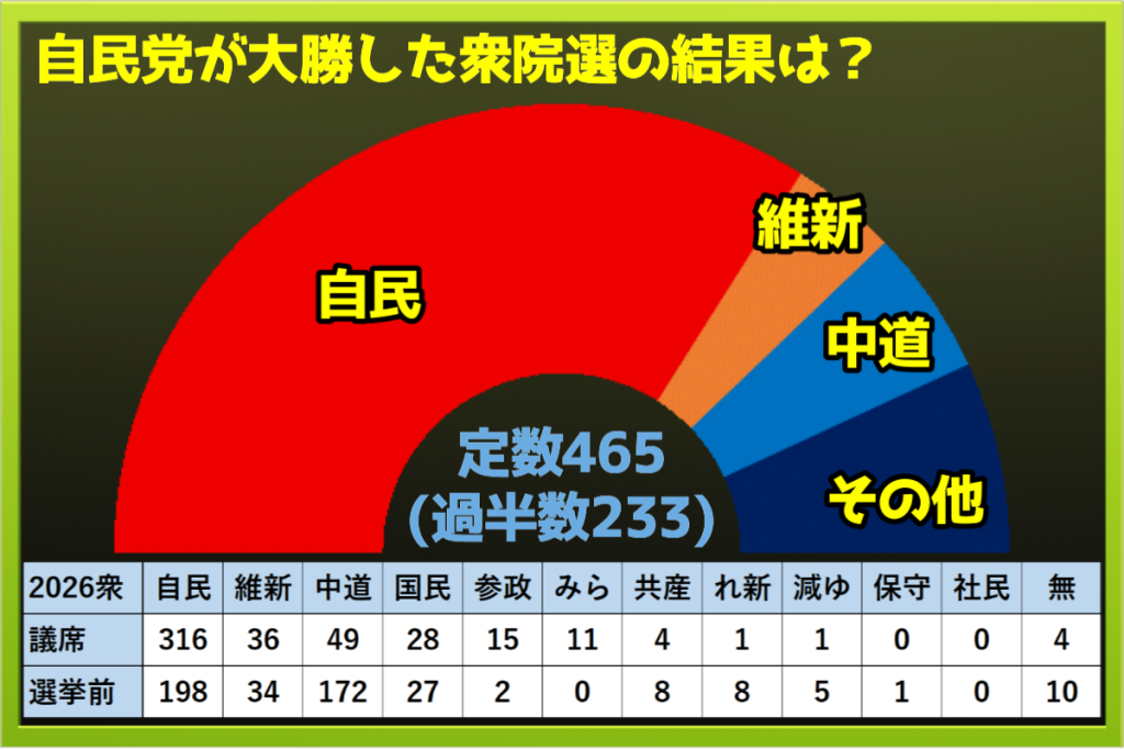 投開票の結果、高市首相が率いる自民党が大勝する結果となりました。