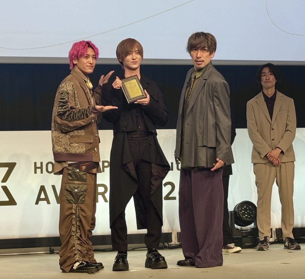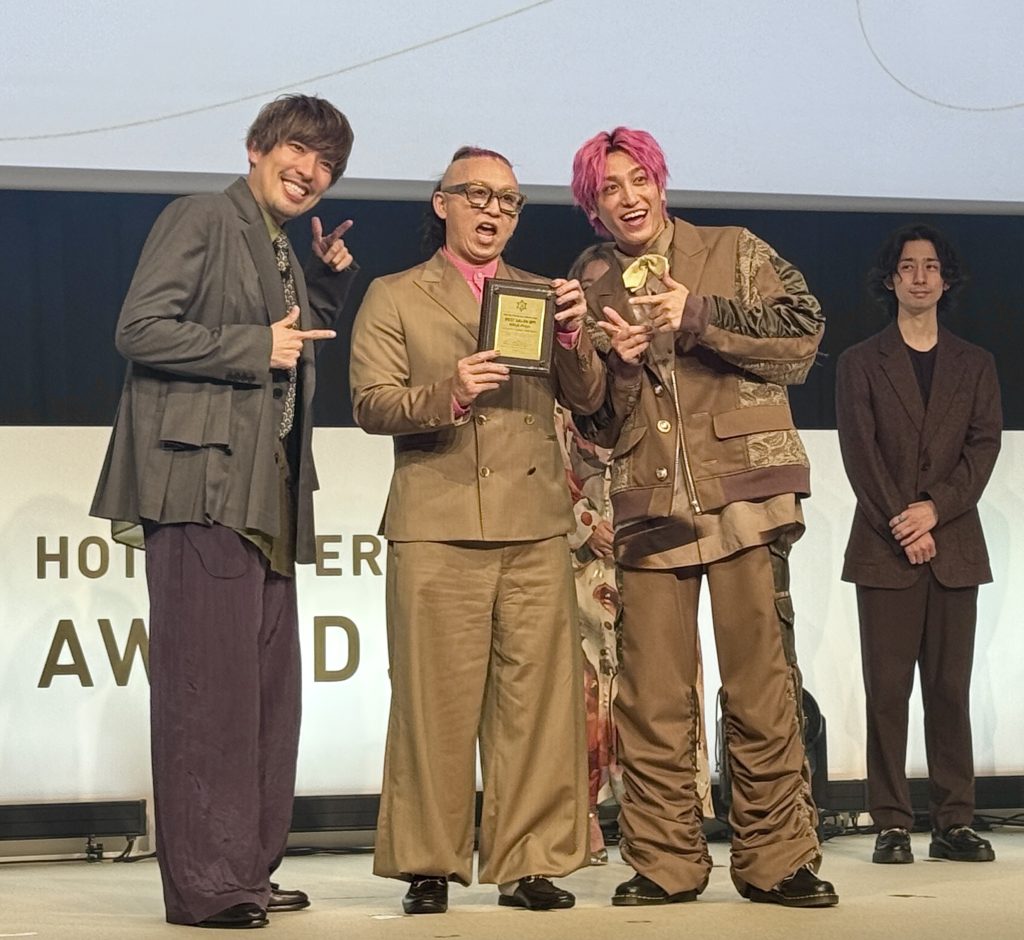 関東2席以下のゴールドプライズを4年連続で受賞したTUMUGU代官山。「ドラケン(少年漫画・東京リベンジャーズの人気キャラ)じゃないですか」とりんたろー。さんに突っ込まれながらポーズを決めるmaru代表